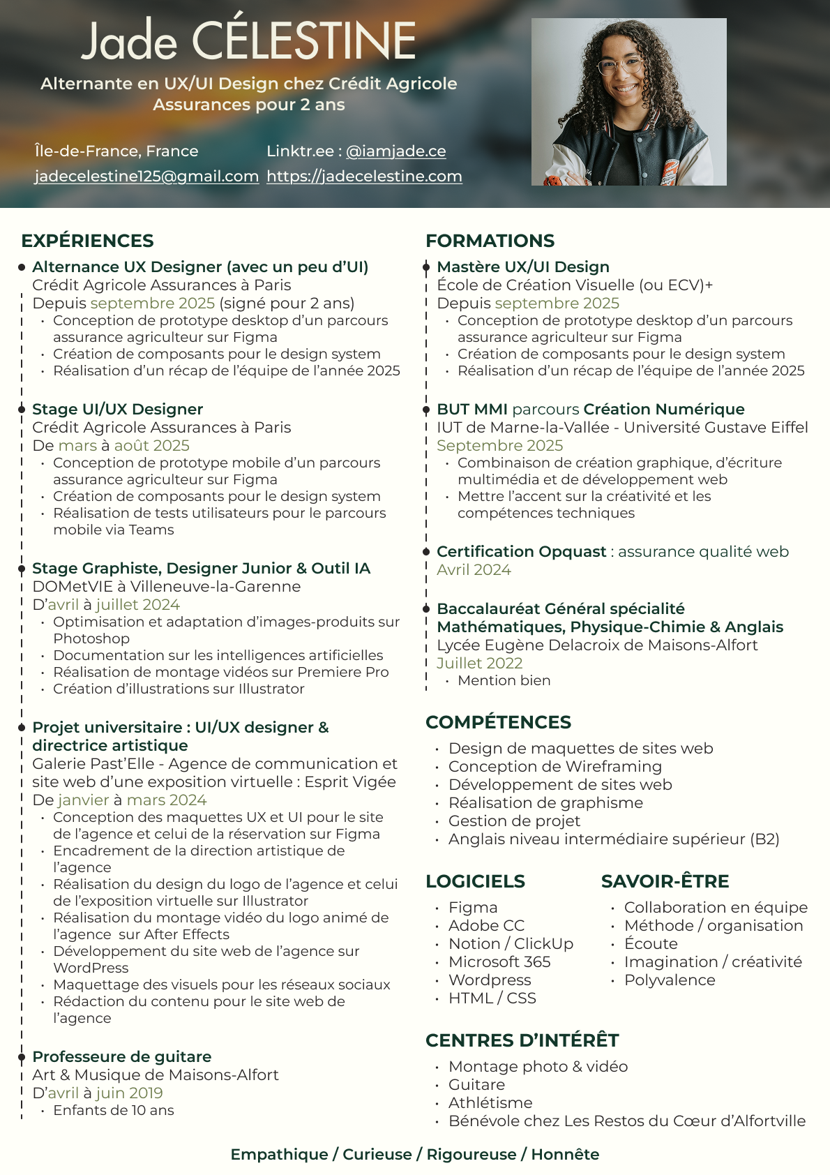 Nous avions dans le cadre de notre cours en anglais réalisé des présentations orales mettant en avant nos inspirations et choix pour le CV. C’est ainsi que j’ai déterminé l’esthétique et l'atmosphère de mon CV, mais aussi son contenu.